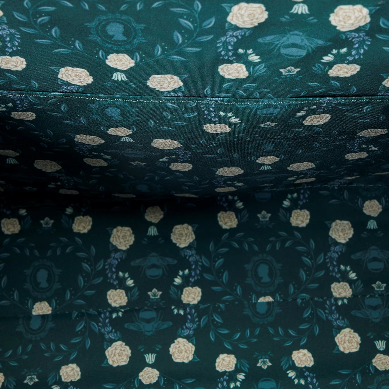 You'll find embroidered florals all over the bag – the top flap, the bottom corners, the sides, and the back! In the center of the top flap, you'll find a 3D molded metal rivet of a bee. This bag gives any outfit an instantly elegant feel! It's perfect for any Bridgerton fan who wants to show off their fav show with their accessories!